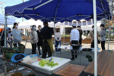 学院高校は、大学生リーダー達のキャンプ料理ブースをお手伝いしました。